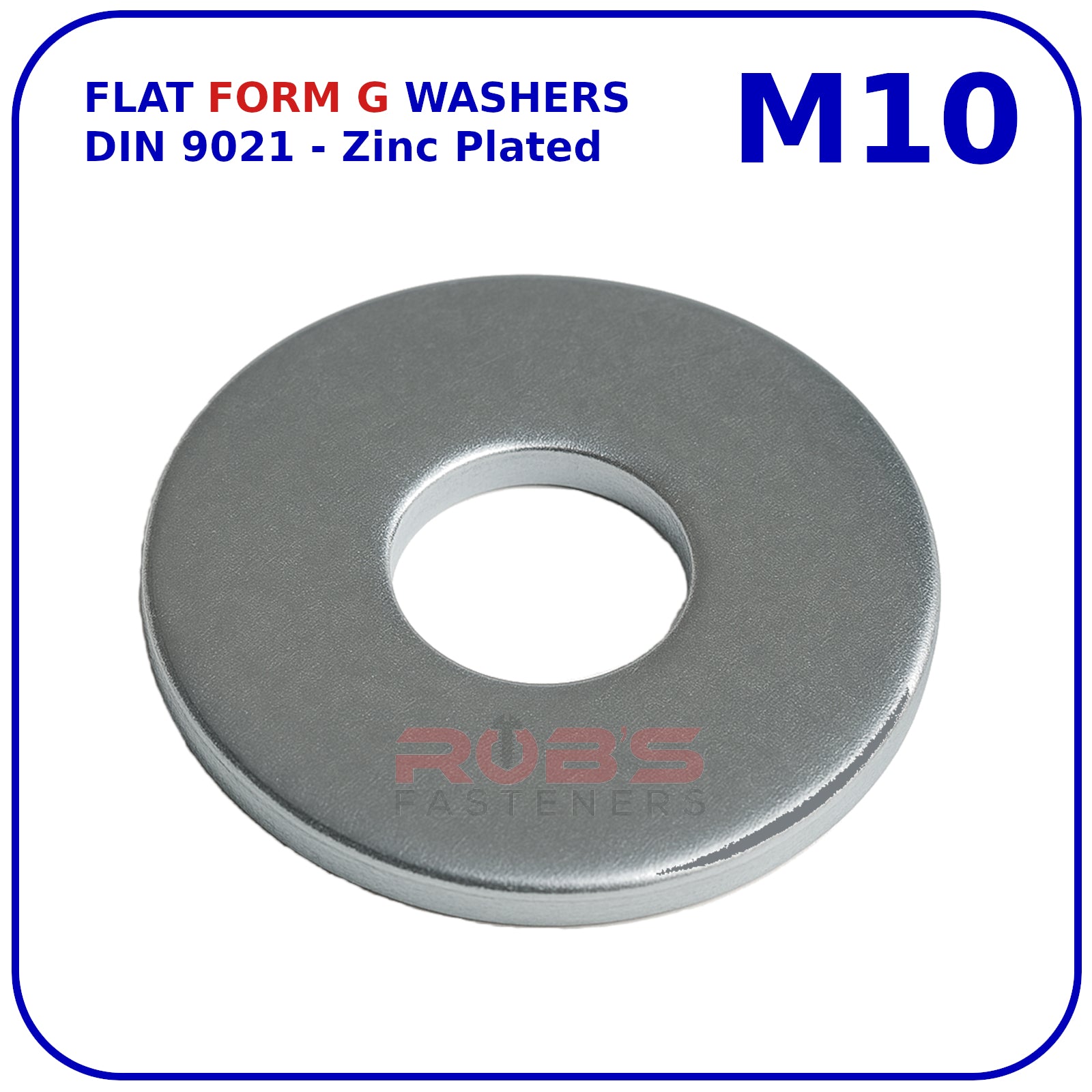 M10 FORM G WASHERS LARGE FLAT WIDE THICK DIN 9021 ZINC PLATED