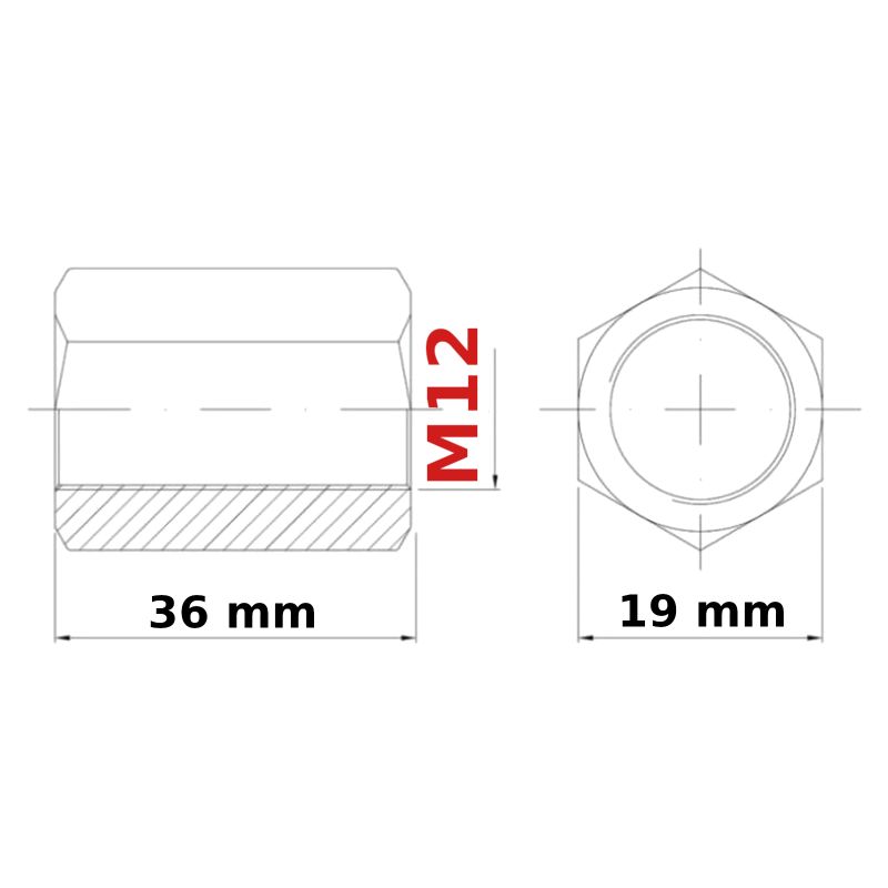 M12 (Length 36 mm) NUTS LONG DIN 6334