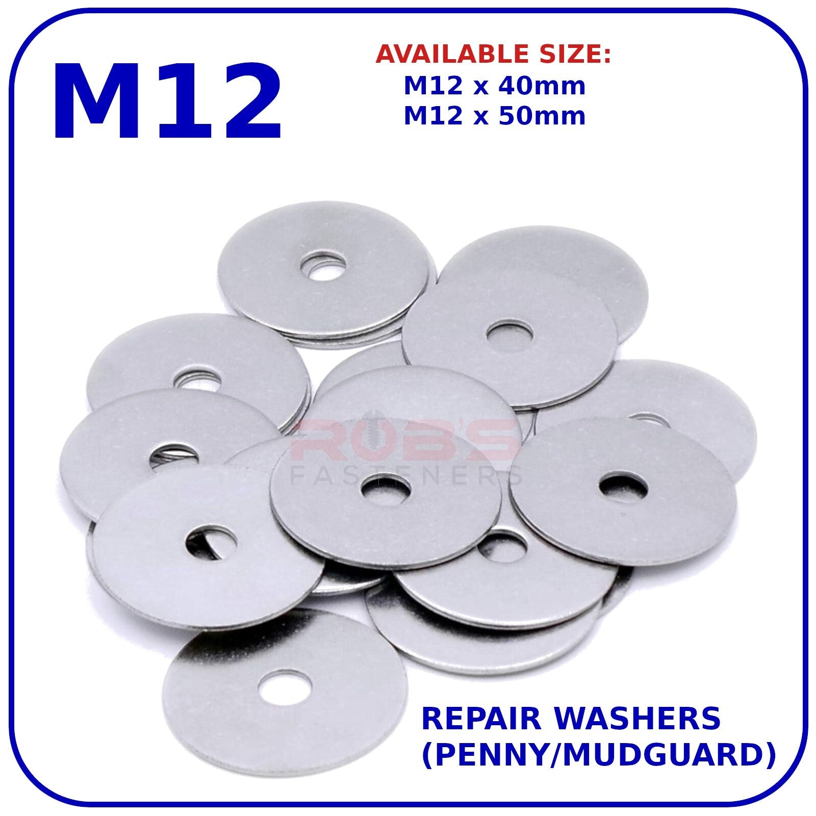 M12 REPAIR WASHERS PENNY MUDGUARD LARGE WIDE ZINC PLATED