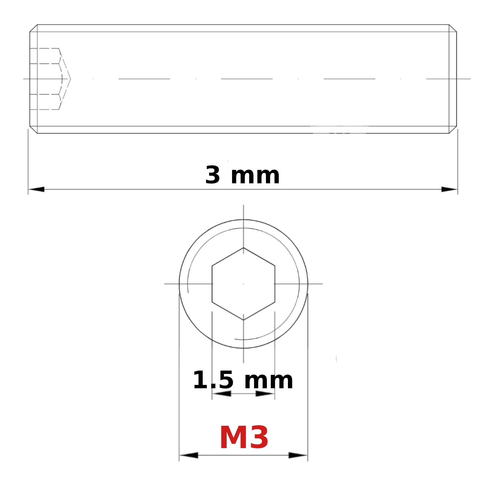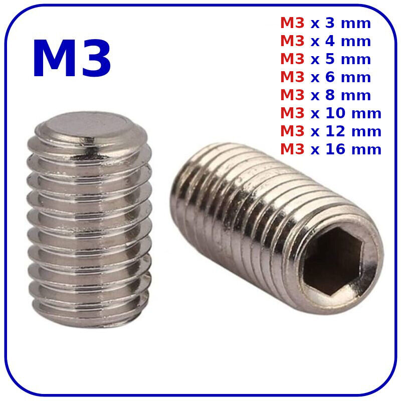 M3 (ø 3mm) SOCKET GRUB SCREWS FLAT END ZINC DIN 913