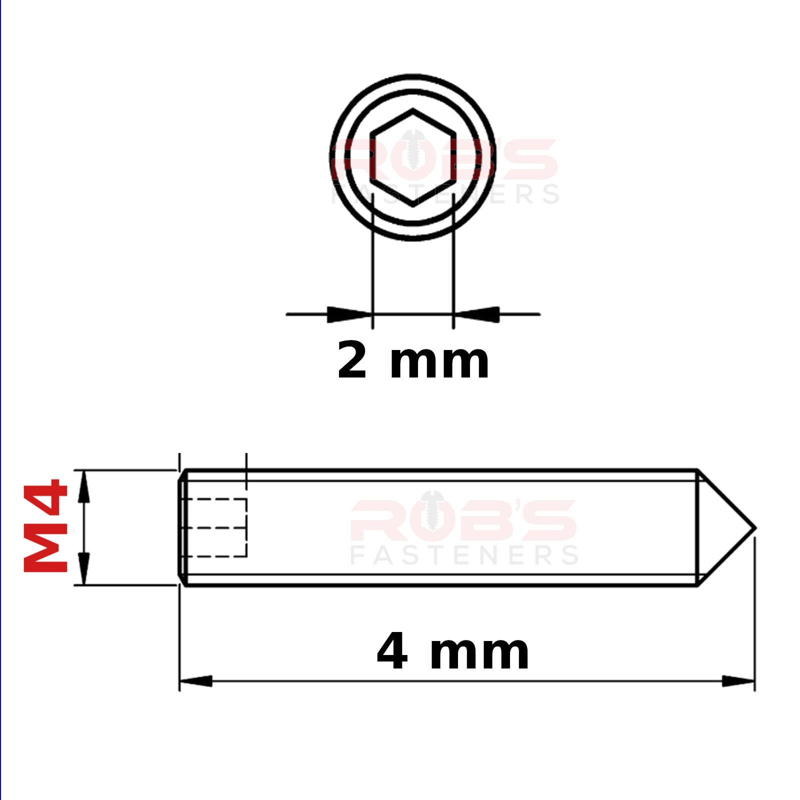 M4 (ø 4 mm) SOCKET GRUB SCREWS CONE POINT BLACK
