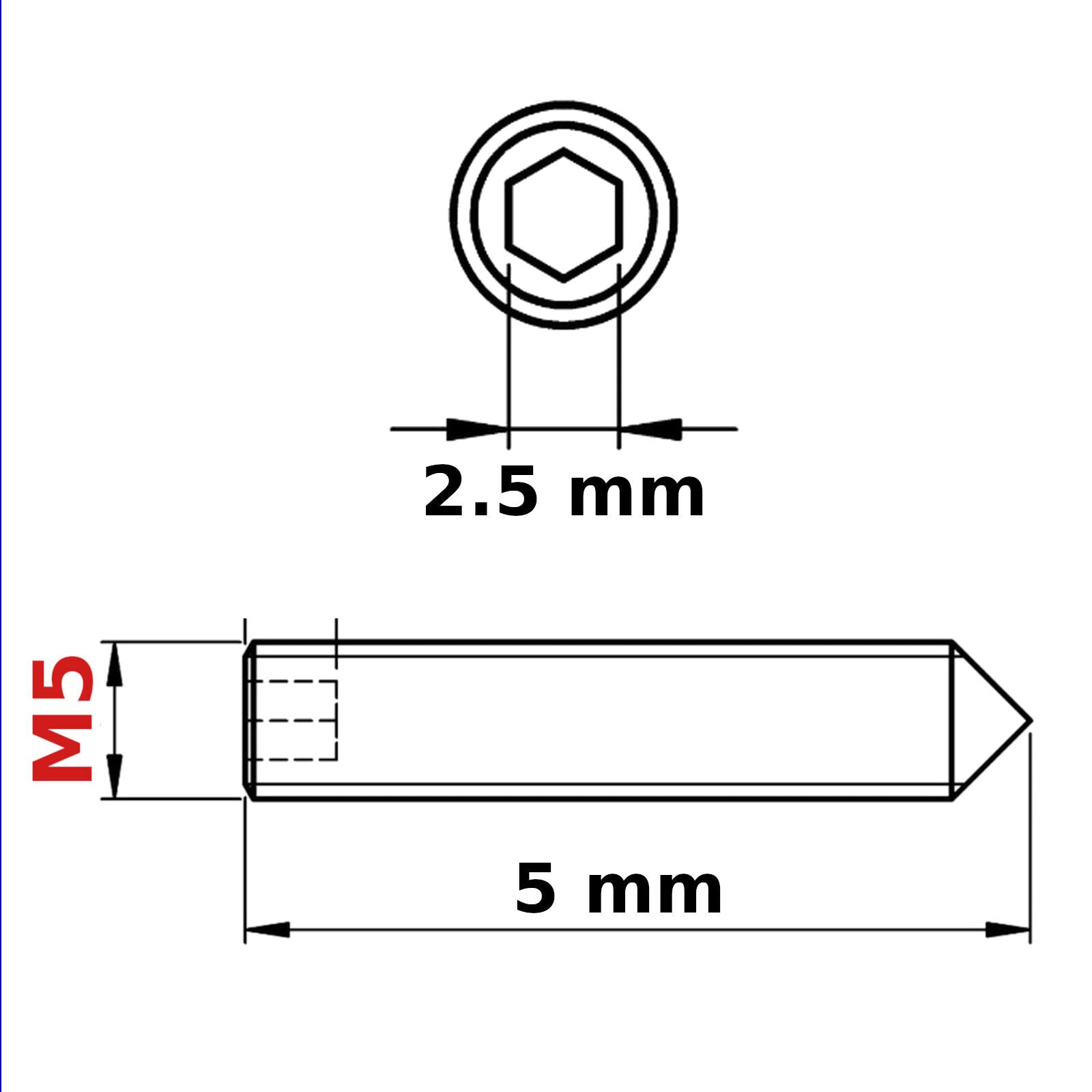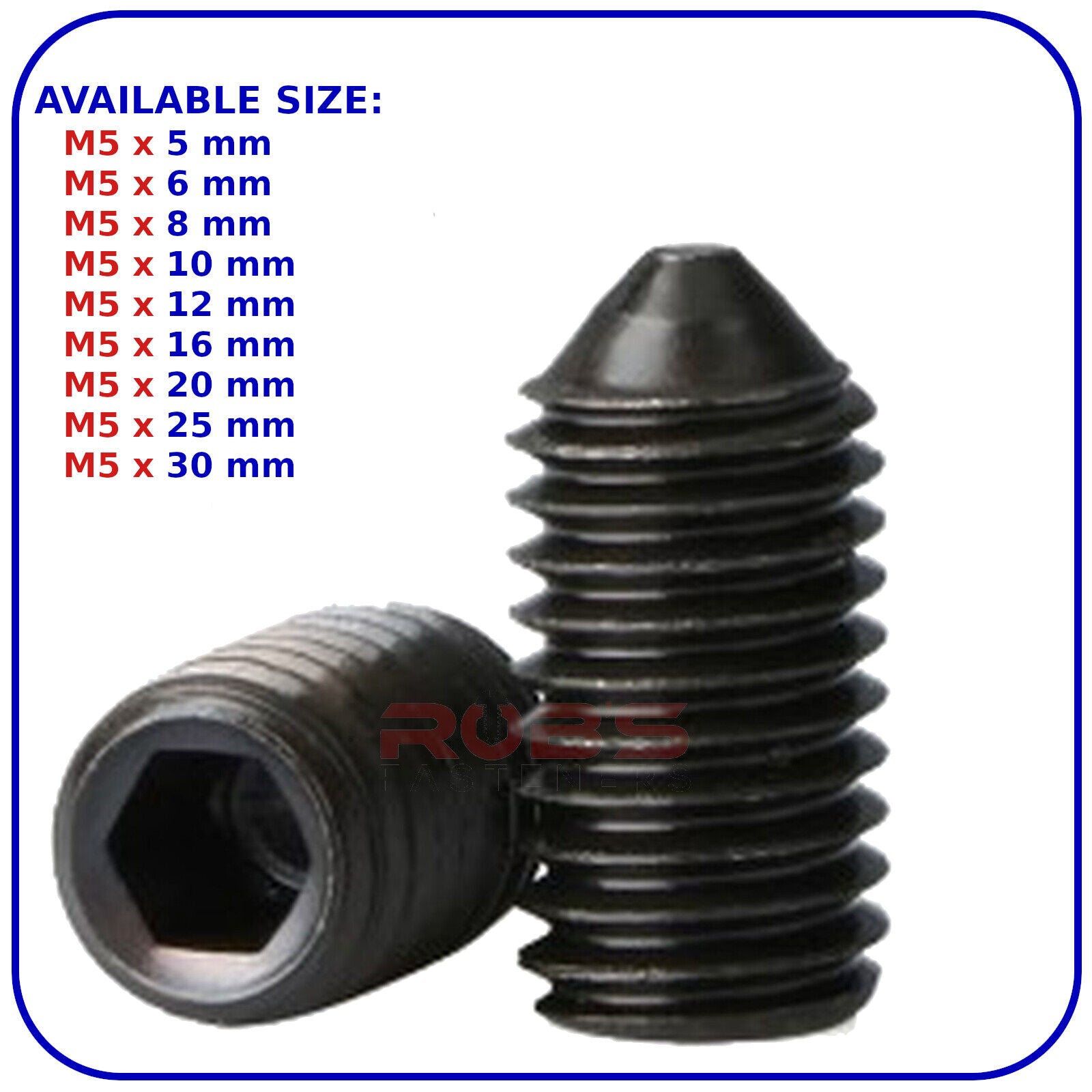 M5 (ø 5 mm) SOCKET GRUB SCREWS CONE POINT BLACK
