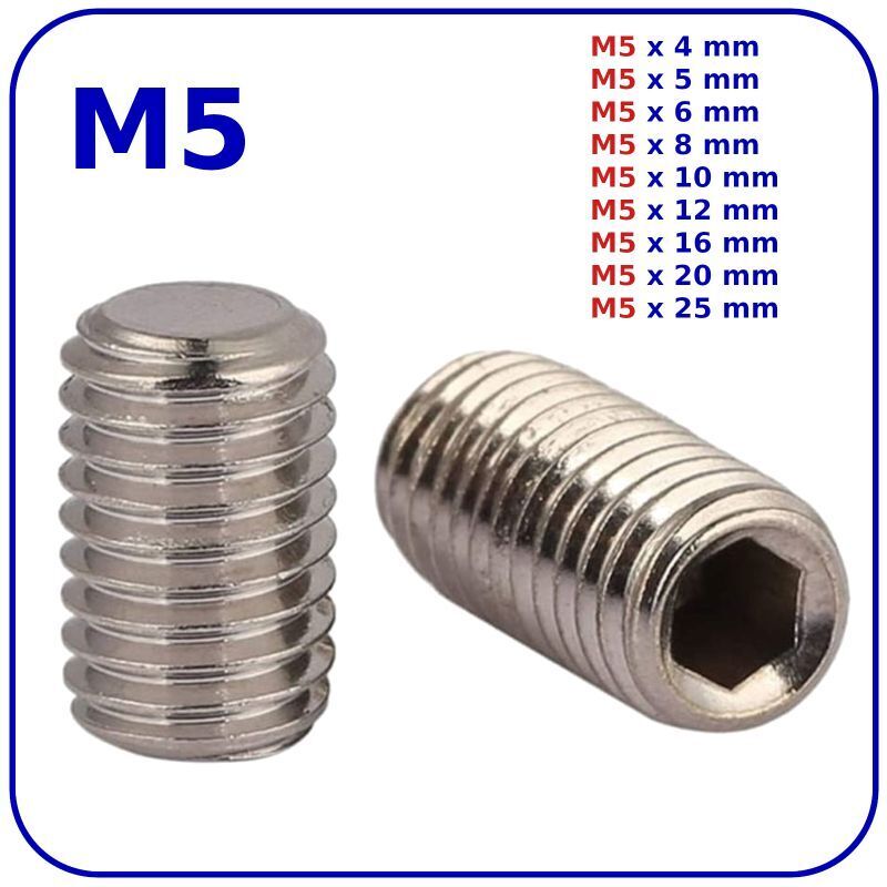 M5 (ø 5mm) SOCKET GRUB SCREWS FLAT END ZINC DIN 913
