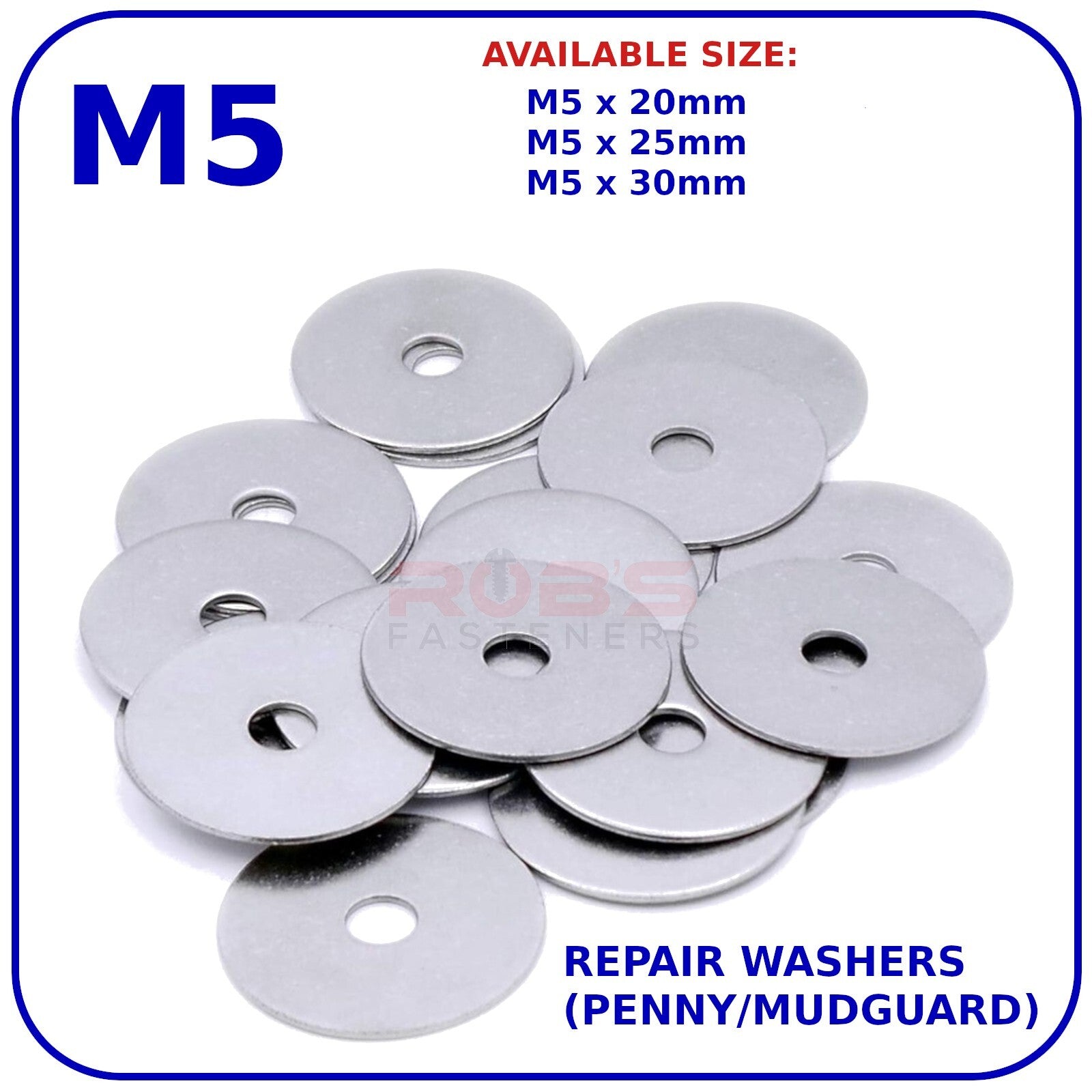 M5 REPAIR WASHERS PENNY MUDGUARD LARGE WIDE ZINC PLATED