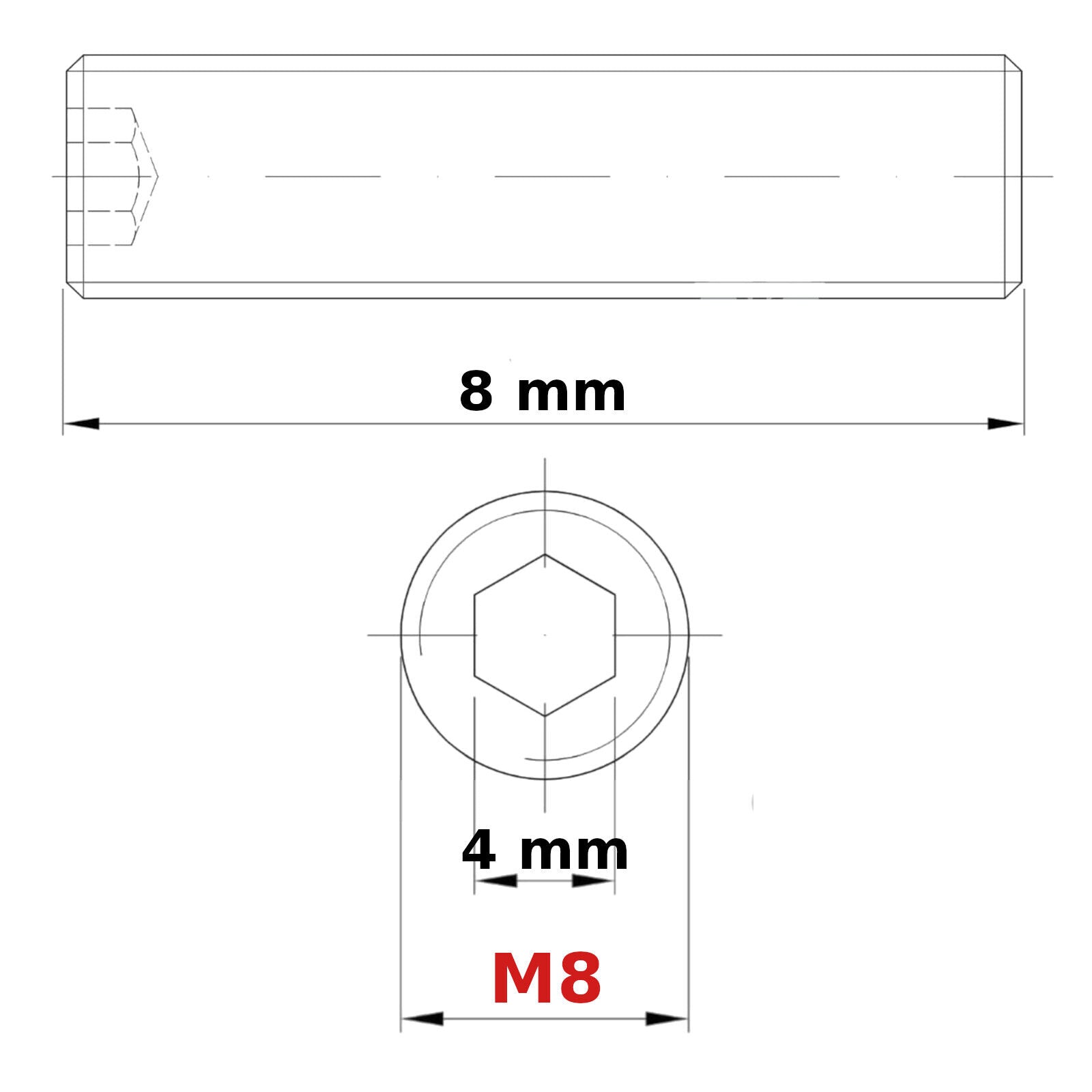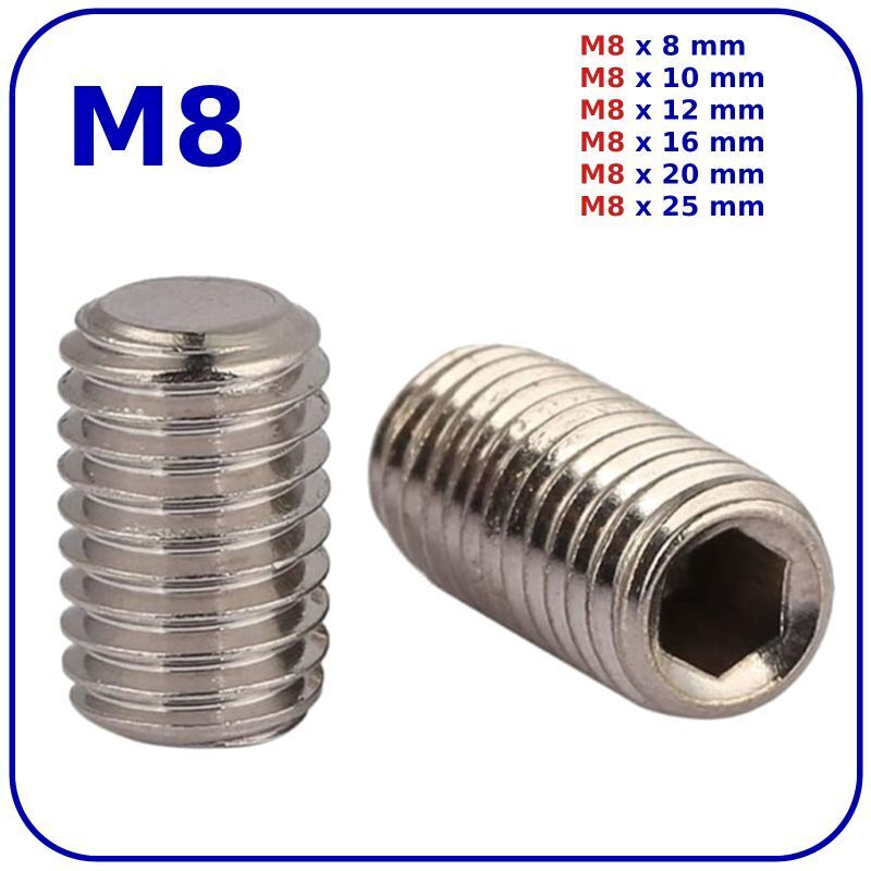 M8 (ø 8mm) SOCKET GRUB SCREWS FLAT END ZINC DIN 913
