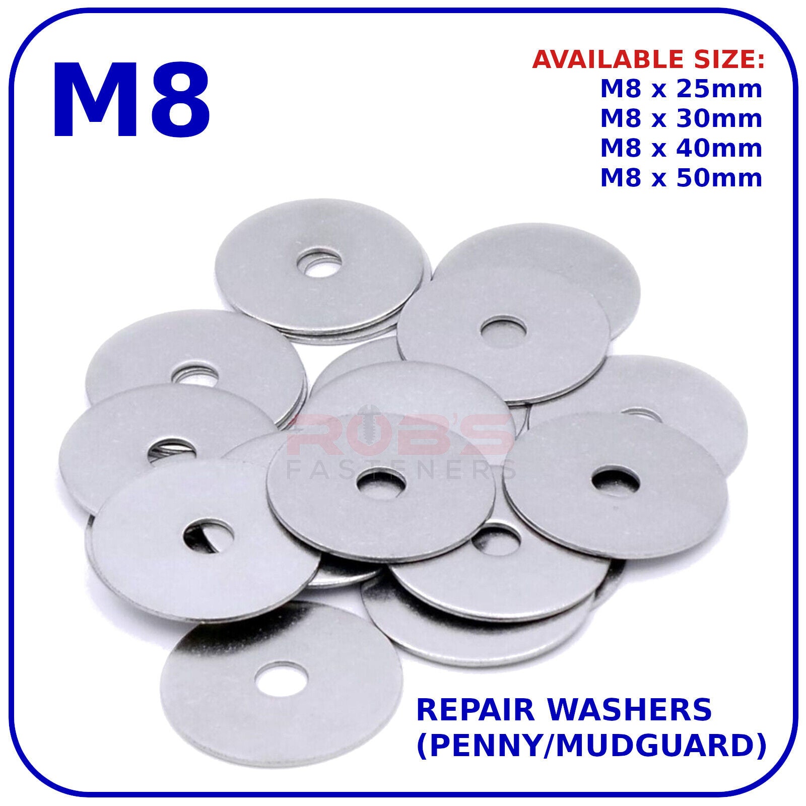 M8 REPAIR WASHERS PENNY MUDGUARD LARGE WIDE ZINC PLATED