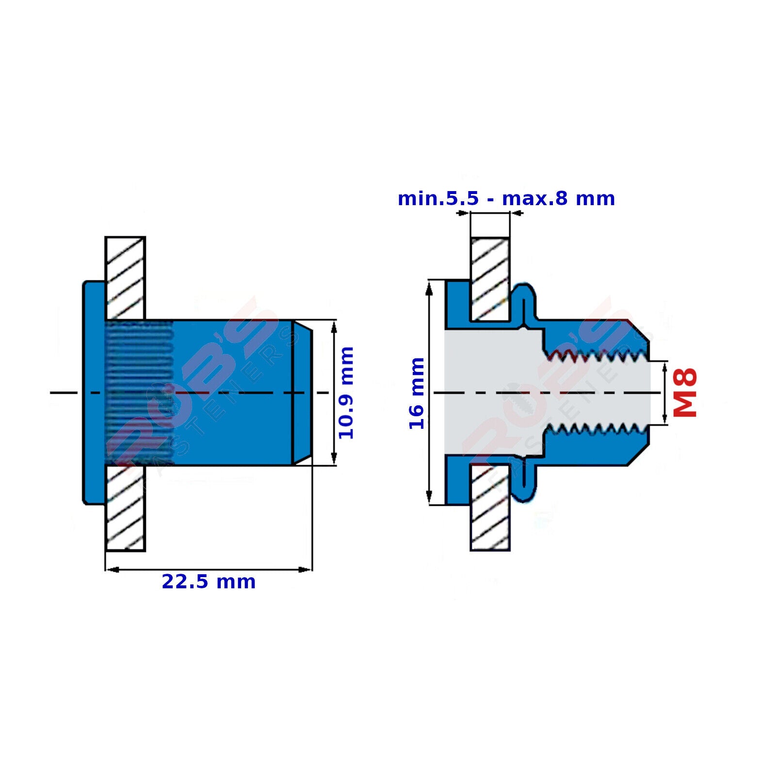 M8 x 22.5 mm (fits any M8 (ø 8 mm) metric thread screws/bolts)