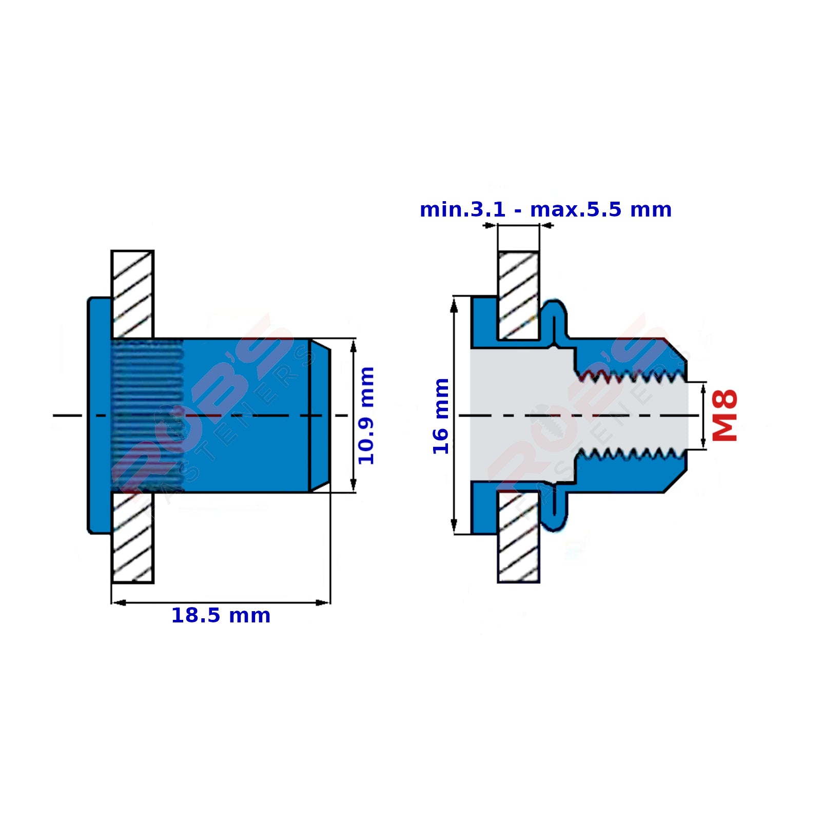 M8 x 18.5 mm (fits any M8 (ø 8 mm) metric thread screws/bolts)