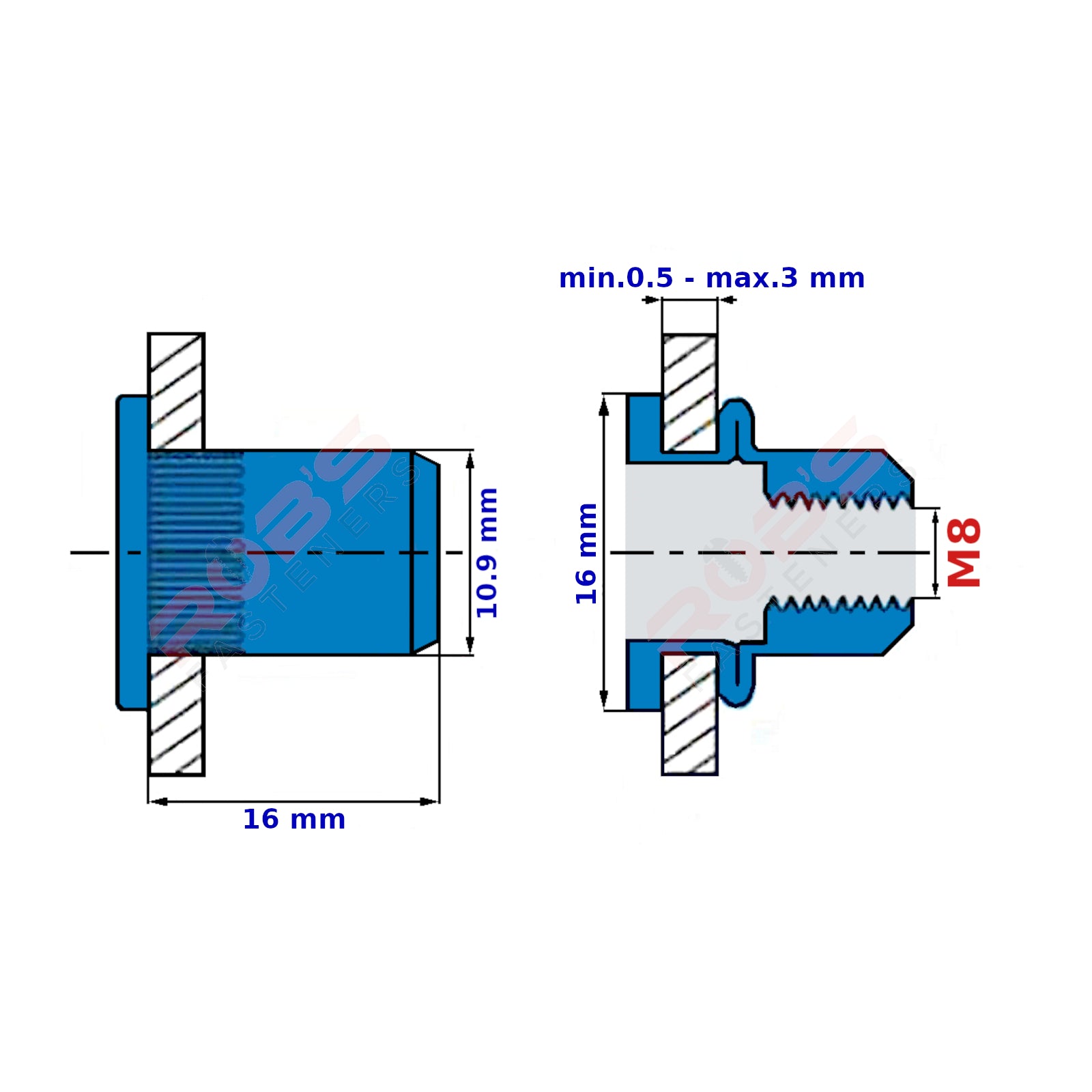 M8 x 16 mm (fits any M8 (ø 8 mm) metric thread screws/bolts)