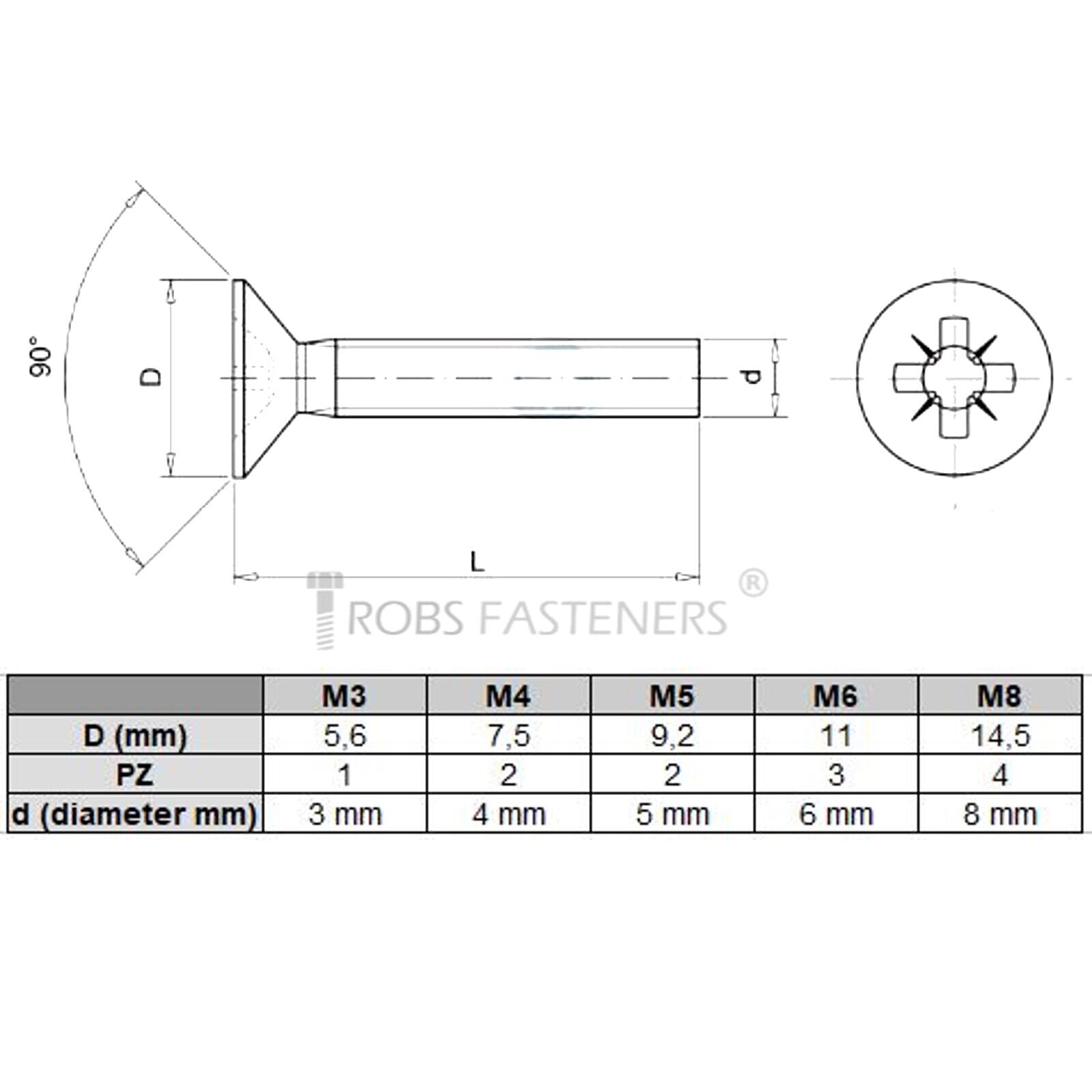 M8 MACHINE SCREWS COUNTERSUNK FLAT HEAD POZIDRIV ZINC PLATED DIN 965