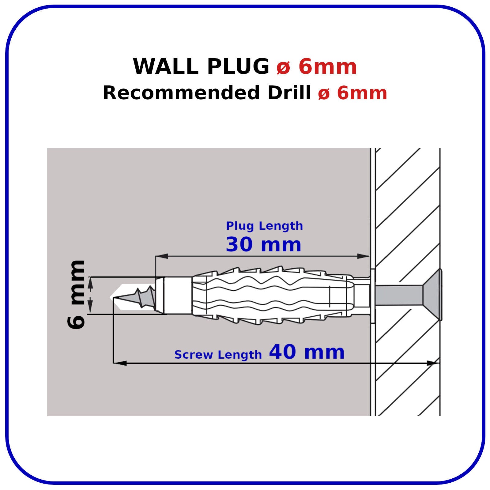 ø 6mm WALL PLUGS AND SCREWS BRICK STONE CONCRETE NYLON UNIVERSAL PLASTIC FIXING