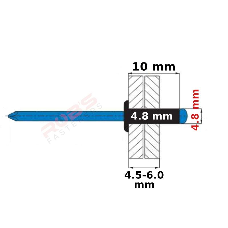 Pop Rivets BLACK 4.8 mm Aluminium Head Steel Mandrel Dome Blind Rivet Coloured