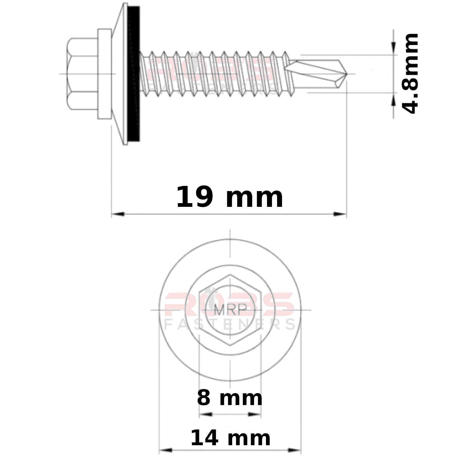 * Hexagon head with drilling point and EPDM bonded sealing washer.