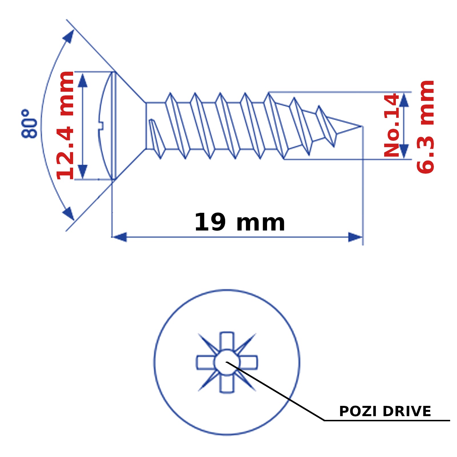 Pozi Countersunk Self-Tapping Wood Screws Raised Head.