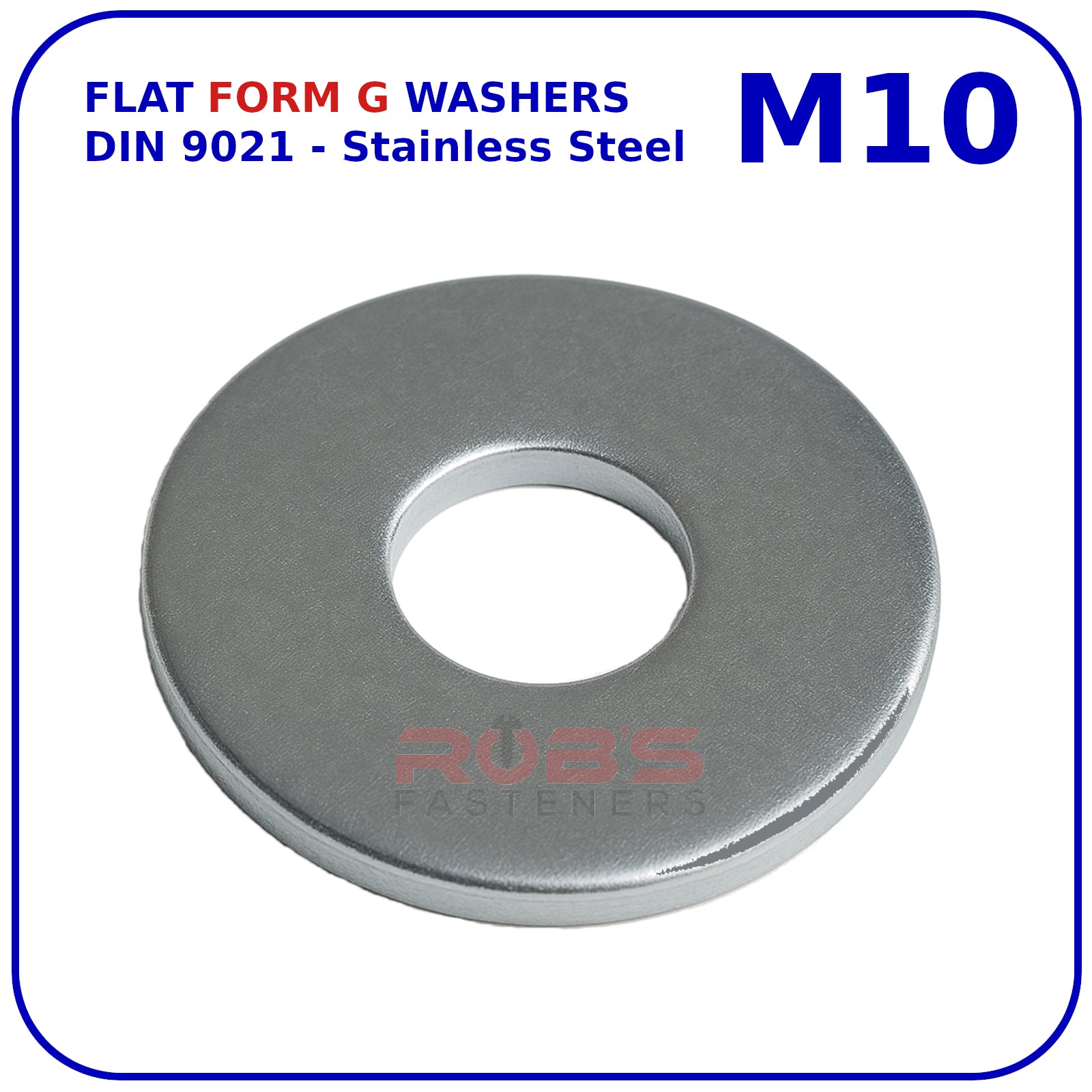 M10 FORM G WASHERS LARGE FLAT WIDE THICK DIN 9021 STAINLESS STEEL