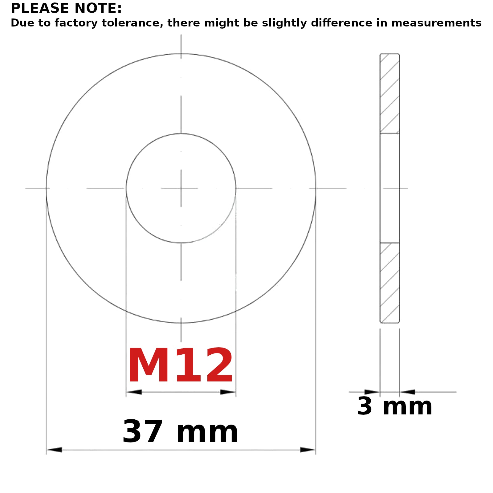 M12 FORM G WASHERS LARGE FLAT WIDE THICK DIN 9021 STAINLESS STEEL